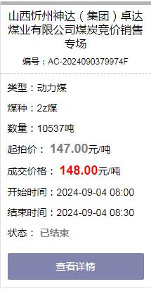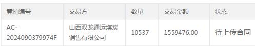 ◆山西雙龍通運煤炭銷(xiāo)售有限公司 以148元/噸(含稅)成功拍得 2z煤10537噸;